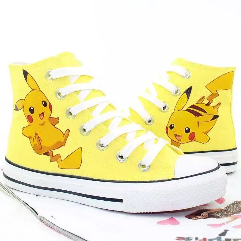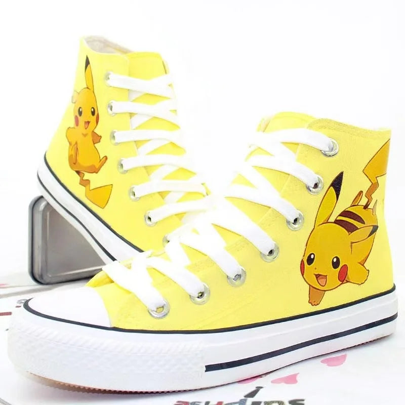 Pikachu Hot selling high top canvas shoes for women men's plus size cute student white sports shoes couple black casual shoes